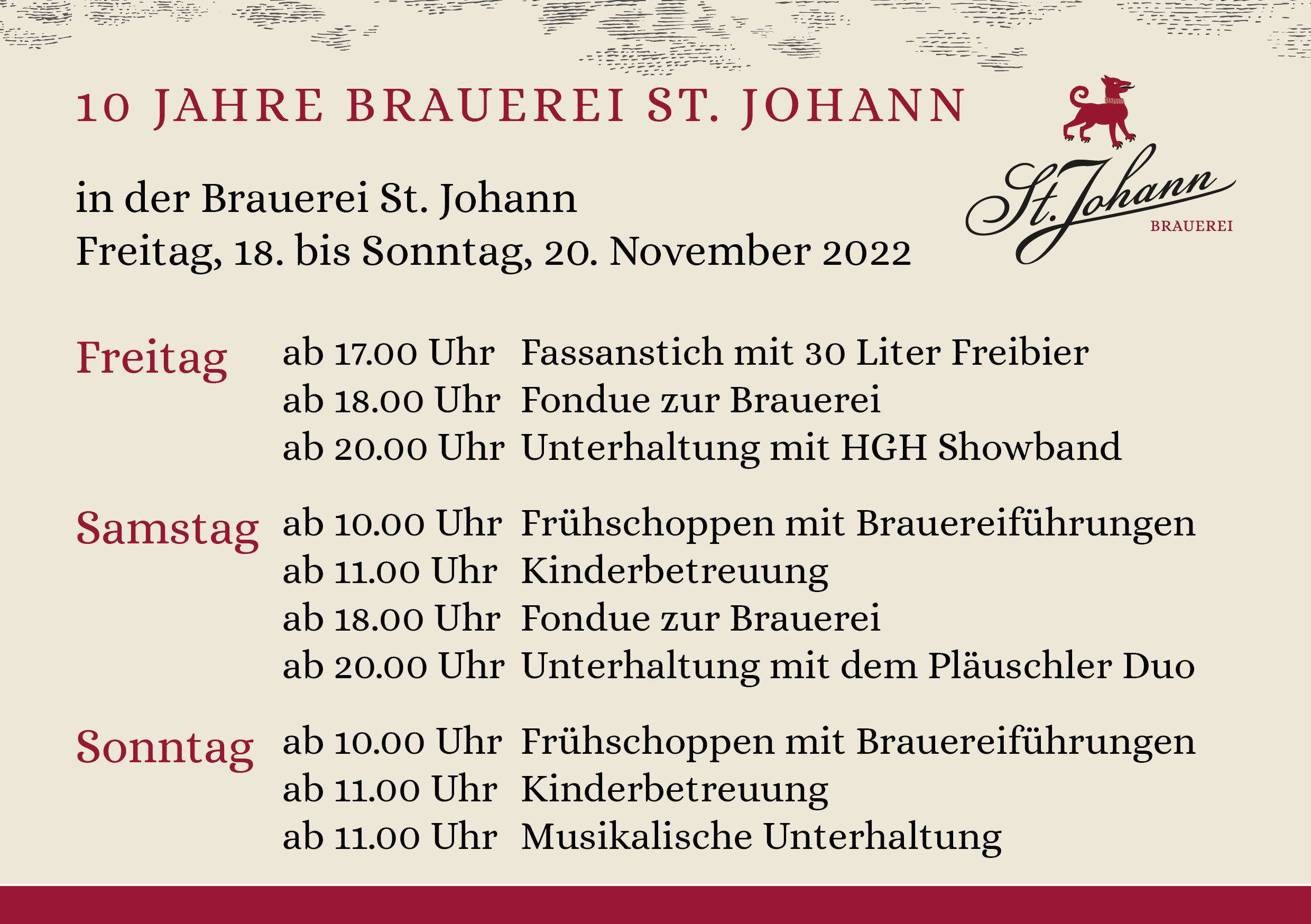 Mehr Informationen für unsere Aktionäre unter www.brauereistjohann.ch/gv/