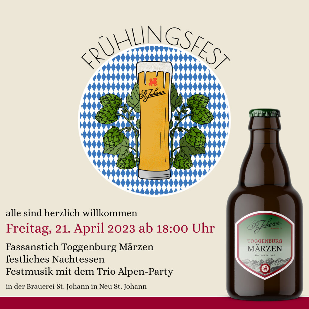 Am Karfreitag 29.3.2024 stechen wir um 18.00 Uhr das Toggenburg Märzen an.