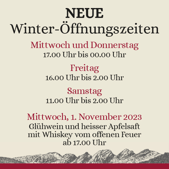 Ab dem 1. November haben wir unsere Winteröffnungszeiten.