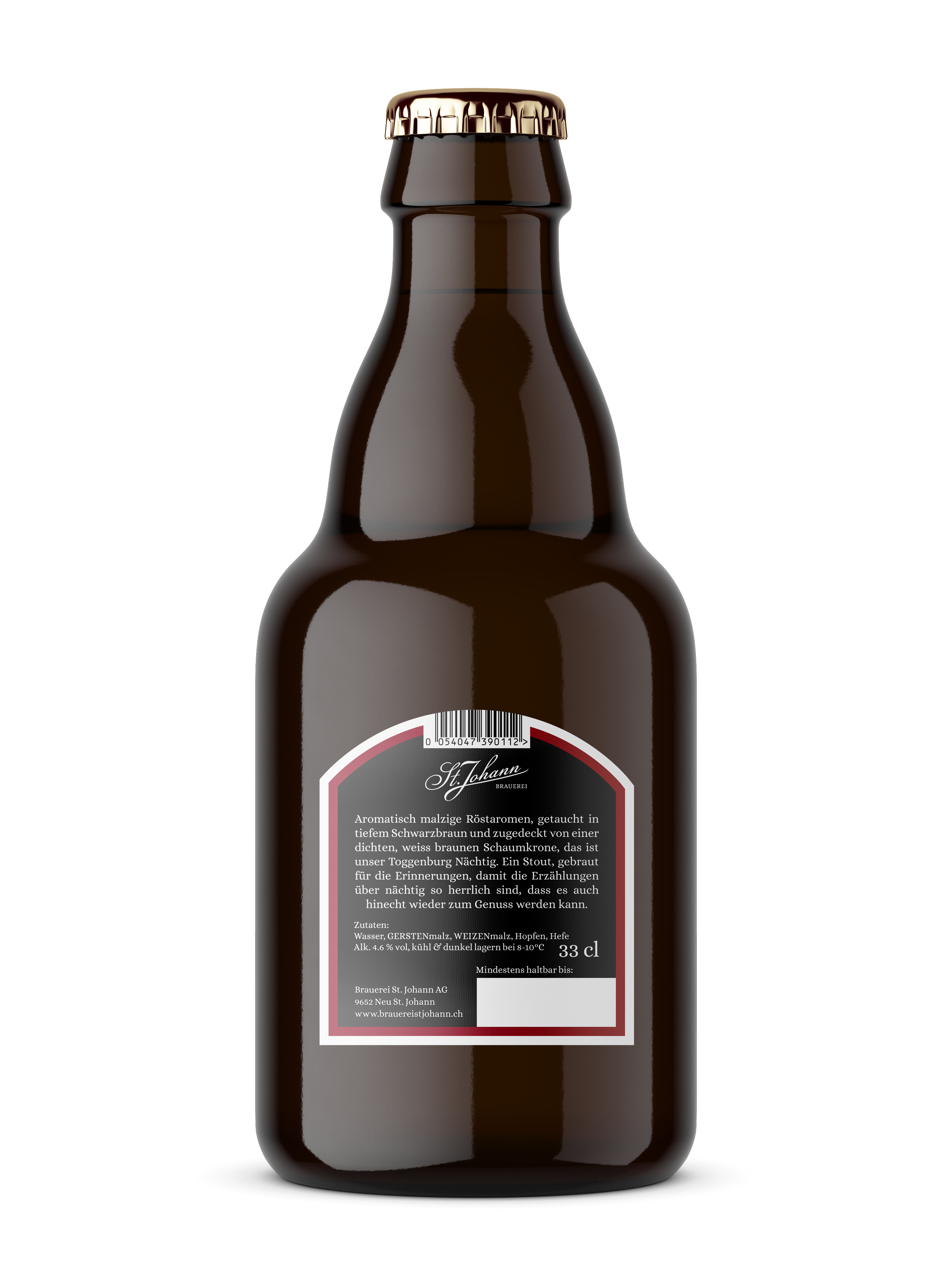 Aromatisch malzige Röstaromen, getaucht in tiefem Schwarzbraun und zugedeckt von einer dichten, weiss braunen Schaumkrone, das ist unser Toggenburg Nächtig. Ein Stout gebraut für die Erinnerungen, damit die Erzählungen über nächtig so herrlich sind, dass es auch hinecht wieder zum Genuss werden kann.